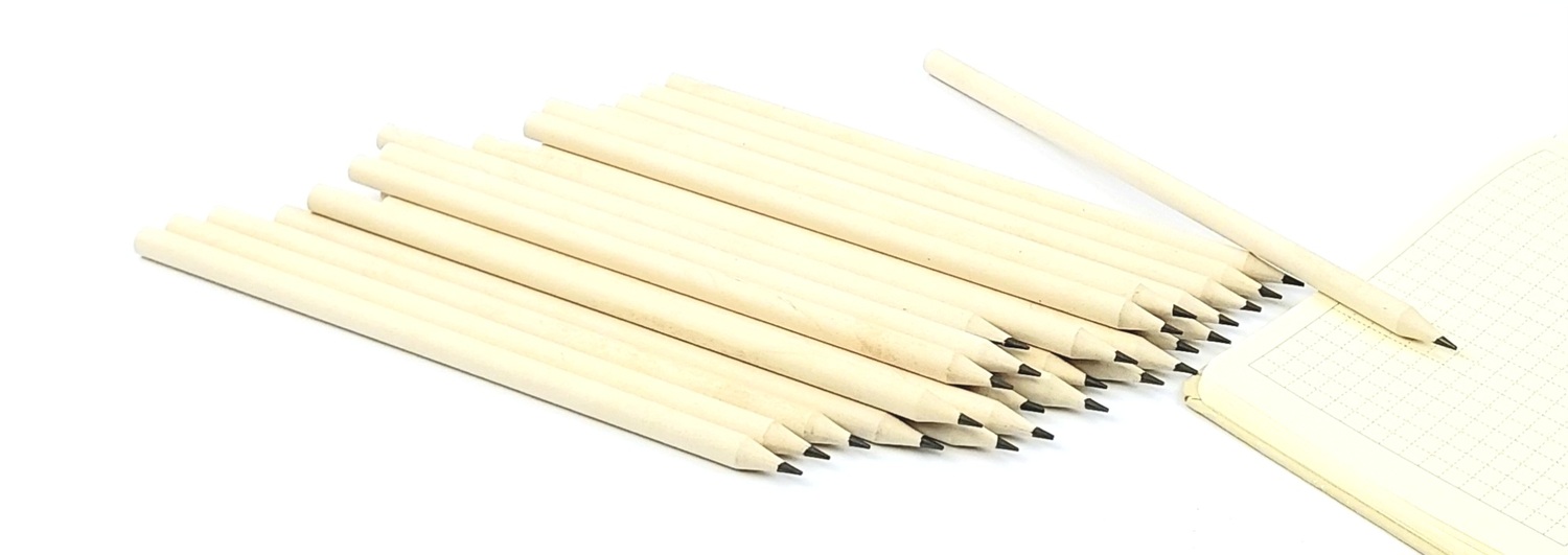 Натурального цвета карандаши из переработанного картона заточенные.